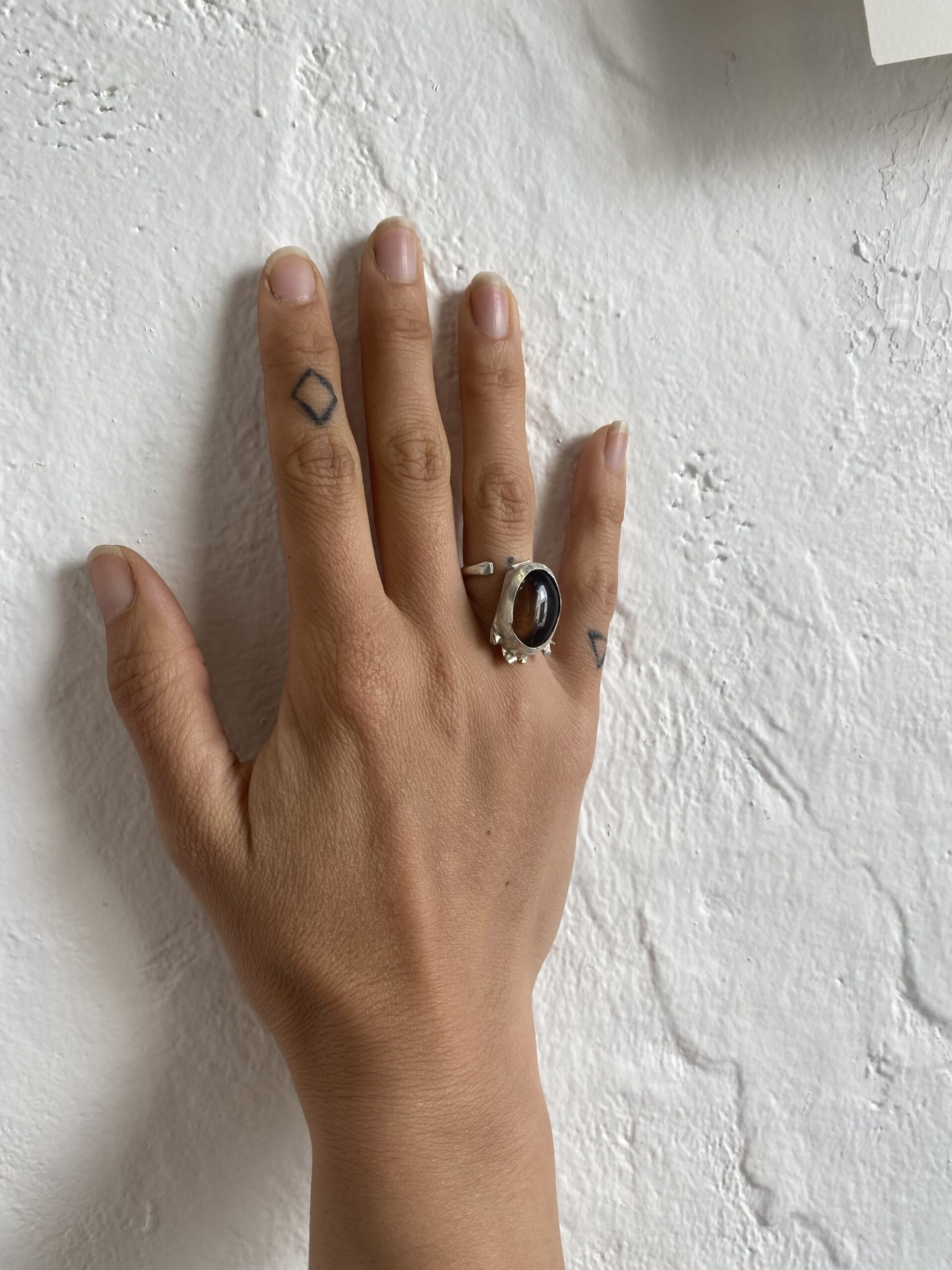Anillo artesanal de plata de ley 925 ecológica, elaborado a mano con cuidado y dedicación.