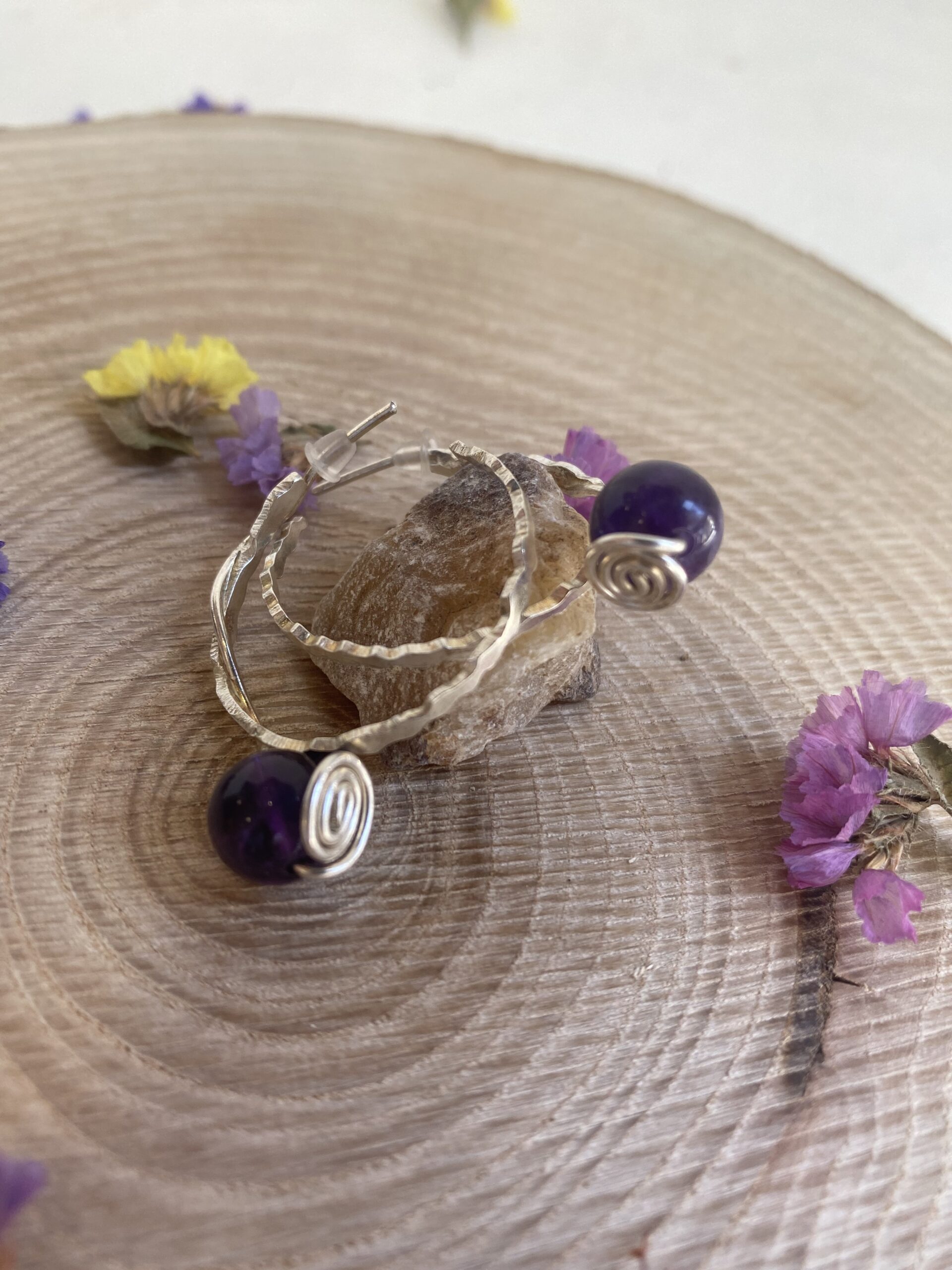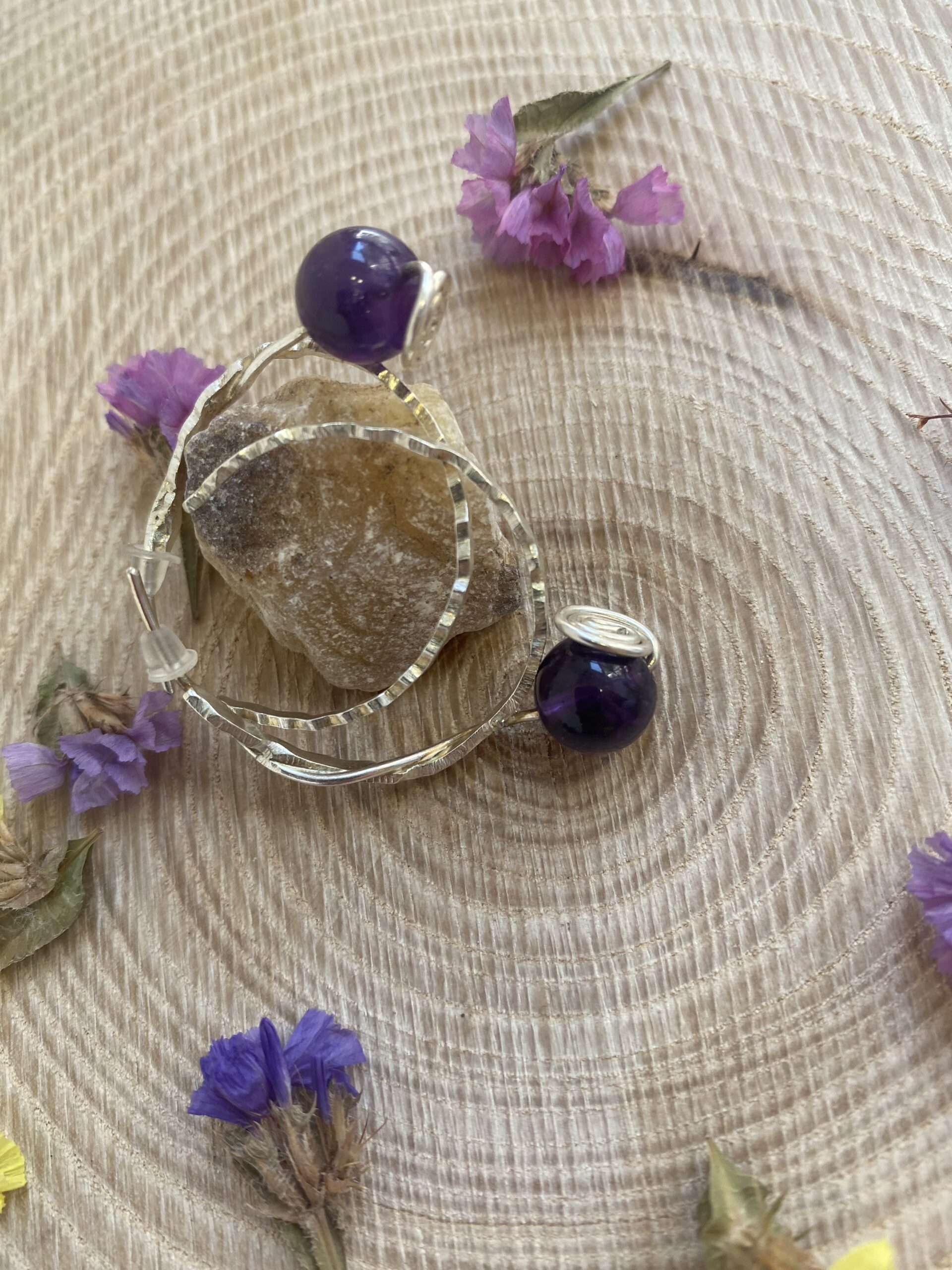 Incorporan piedras de amatista de alta calidad, seleccionadas por su belleza y sus tonalidades naturales, que aportan un toque elegante y armonioso al diseño.